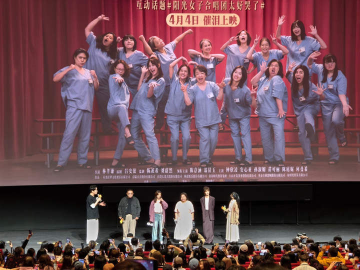三月最后一天的下午,电影《阳光女子合唱团》在上海举行首映礼,影片放映过程中,上海影城SHO千人放映厅内抽泣声此起彼伏,整个影厅“哭成一片海”。而影片落幕之后的映后交流环节,氛围却瞬间反转,陈意涵、钟欣凌等主创演员劲歌热舞,复刻影片中的经典合唱名场面,更集体上演“殴打导演”的欢乐戏码,嬉笑打闹间满是温情。这场大喜大悲的情绪碰撞,恰如影片本身所传递的模样,有伤痕与挣扎的共情,更有向阳而生的力量。